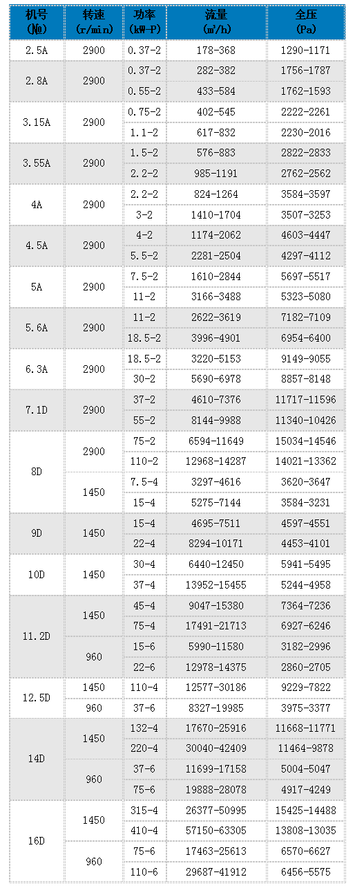 9-19A型高壓離心式通風機一般用于鍛冶爐及高壓強制通風,是與熔化率為1、2、3、5、7t/h化鐵爐配套的專用風機,如輸送有腐蝕性氣體可訂成不銹鋼風機。該風機與國內外同類型的風機相比具有效率高、噪音低、性能曲線平坦,高效區寬廣等優點。此風機通常制成右旋和左旋兩種型式。廣泛適用于一般鍛冶、高壓強制通風、工廠內的氣力輸送。輸送介質的溫度一般不超過50℃(最高不超過80℃),輸送氣體可以是空氣和其它對人體無害對金屬無腐蝕的不自然、不含粘性物質之氣體,介質中所含塵土及硬件物質顆粒不大于150mg/m3。